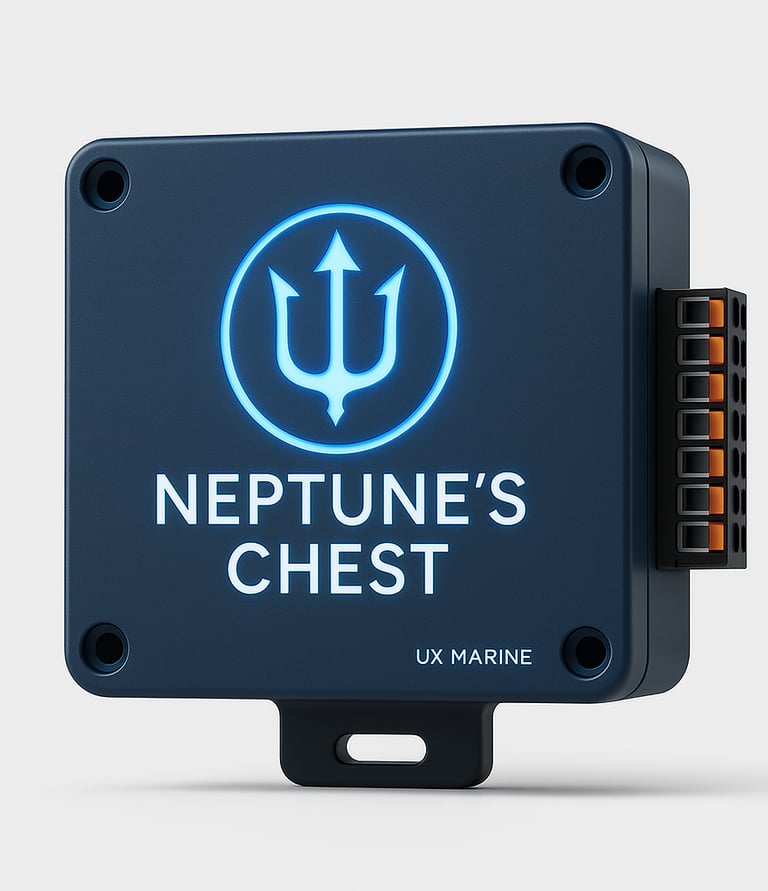 Neptune Chest ist unser eigenes Automatisierungs- und Überwachungssystem an Bord, entwickelt, um das Management von Booten zu vereinfachen, ohne unnötige Komplexität hinzuzufügen